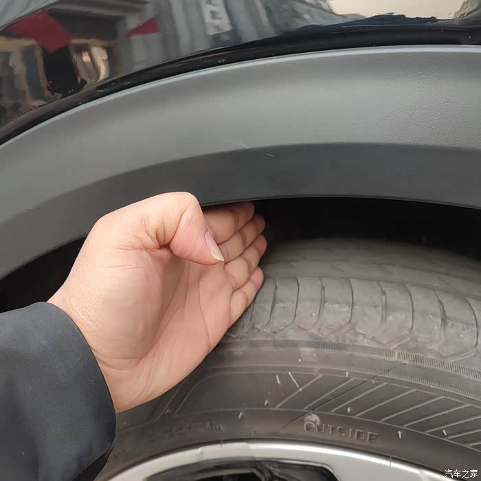 按完之后轮胎和轮眉空间少了一指,外观整体看不出来区别!
