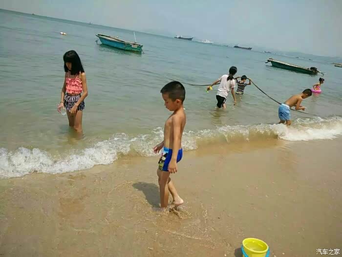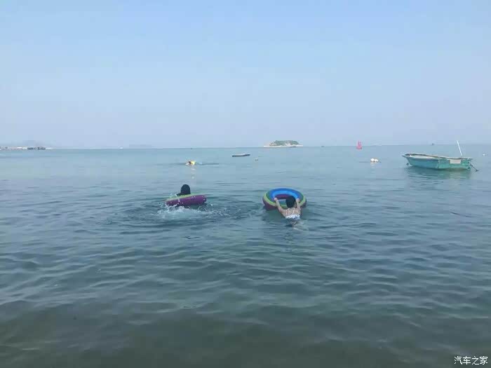 喝完早茶同事就带我们去她们村里的小沙滩,虽然是早上十点多,都已经有游客在游泳了,我们也迫不及待都了泳衣就下海噜