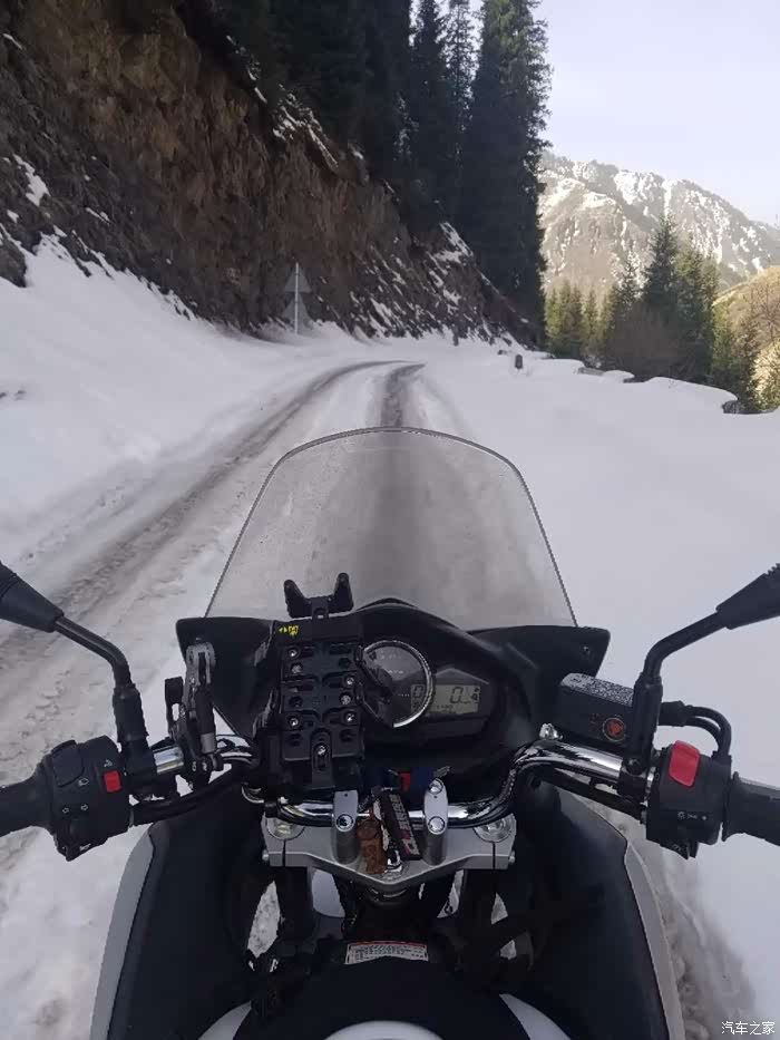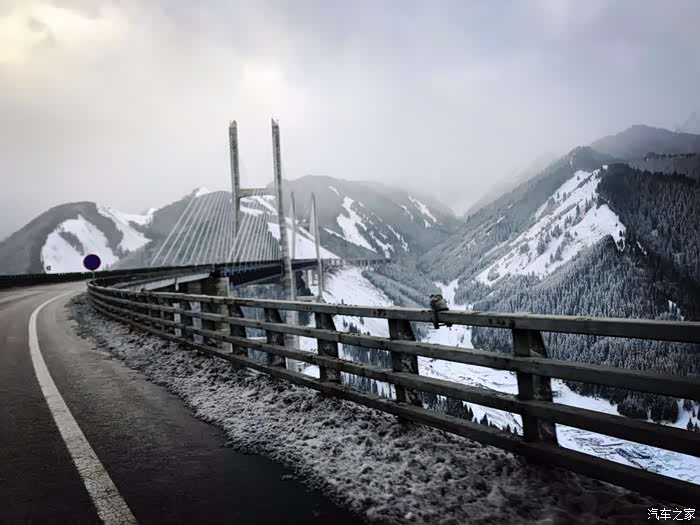 一路上慢慢悠悠进入果子沟区域,在过了赛里木湖之后风很大分不清是下雪还是风大吹起来的雪,总之我俩应急车道走的心惊胆战。下了雪的果子沟大桥真美!