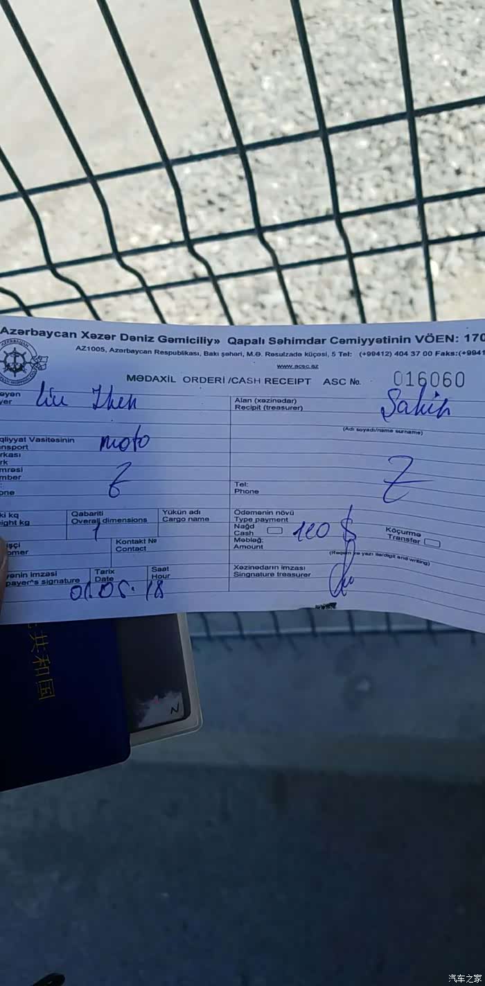 这么多??连忙问这是什么费用!打电话给在阿克套认识的阿塞拜疆朋友艾米乐翻译,得知这是一项关于机动车到港的费用,摩托车只有105美金,而小车300货车500美金!而且在哈国交的35美金只是摩托车的运输费用!出了国ATA单证只是面对中国海关可以用的!得确石油国税收高!当然只针对轮船入关!