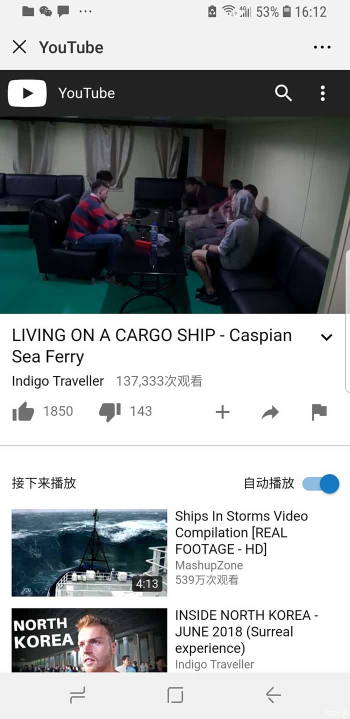 早餐后,和媳妇来到甲板闲转。回到船舱,和小伙伴很闲聊,尼克来自新西兰,是一名旅行家,在YOUTUB网站专门做旅行节目,这次是专门体验里海轮船的。(这次里海节目地址https://www.youtube.com/watch?v=e-opg3fTl3k)