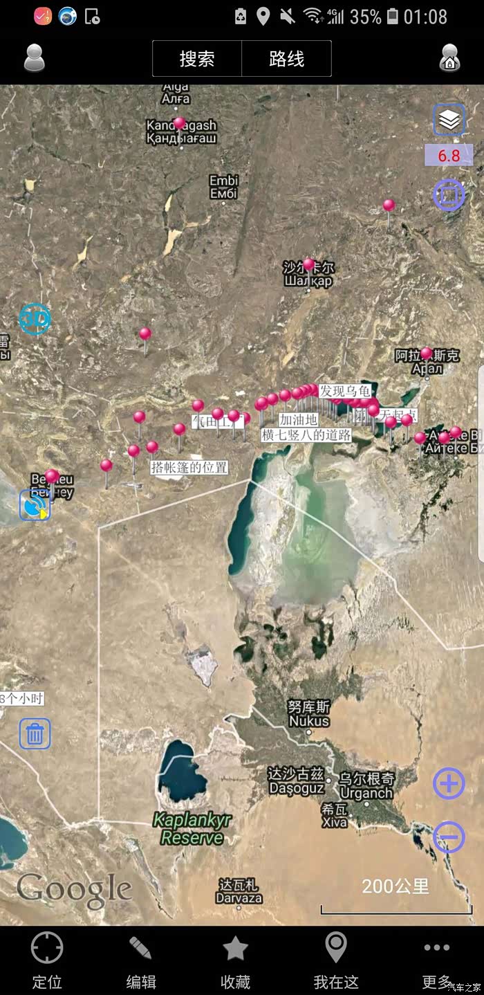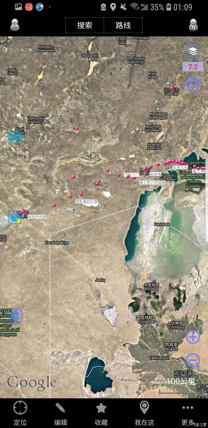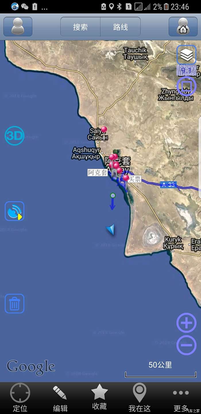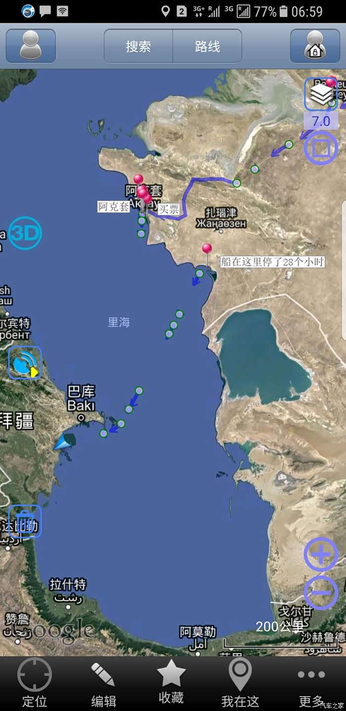 船没开?打手机看着谷歌GPS定位,我们还在哈国境内的岸边,昨晚船顺着岸边走了大概5.60公里的样子一直在原地停着。不知道什么原因,睡也睡不着了起床吧。