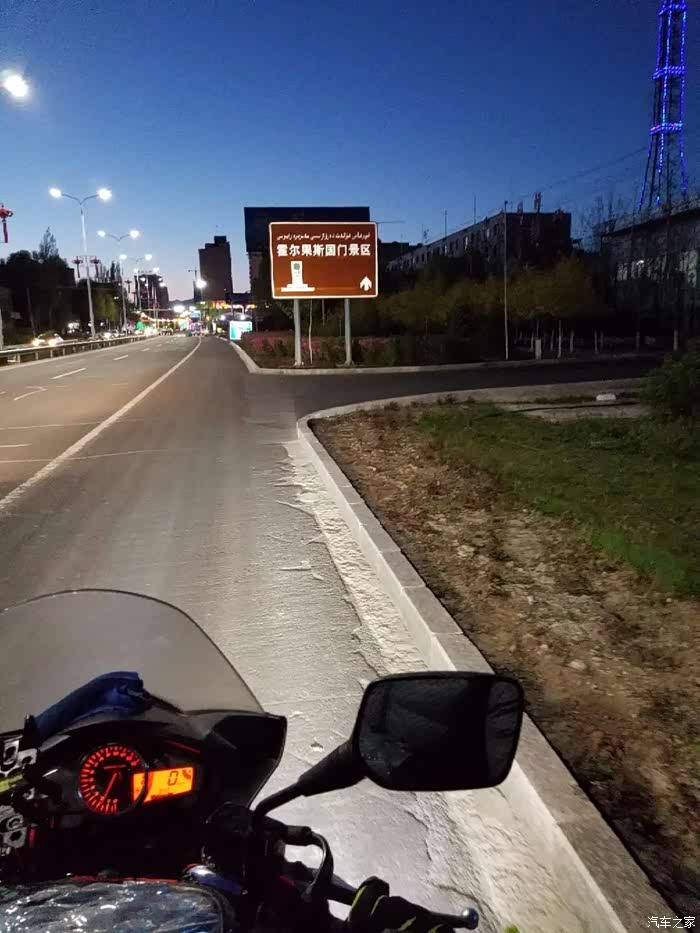 翻过这一区域后气温明显回升,路边的草木也有了新芽。看到霍尔果斯的牌子这才缓了口气。天刚刚黑,停下看时间已经晚上10点30,提前订了酒店吃了点东西洗洗睡!