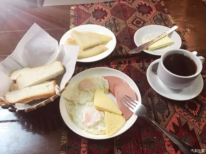 因为时差原因,早晨8点我俩就被饿醒了。去了餐厅没人,我们以为是自己做的打开冰箱,牛奶鸡蛋,火腿,麦片。啼蹄框框,准备大餐,这会老板过来了,带我看了冰箱上的文字,大概意思是一到礼拜天不同的早餐,老板兼厨师接过媳妇的炊具,很快吃过早餐,探索这座城市(由于这次旅行哈萨克的签证需要面签比较难办,所以有种心里就是哈国一定要好好转转,不浪费签证时间和费用)
