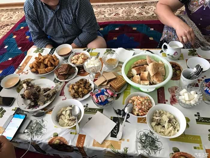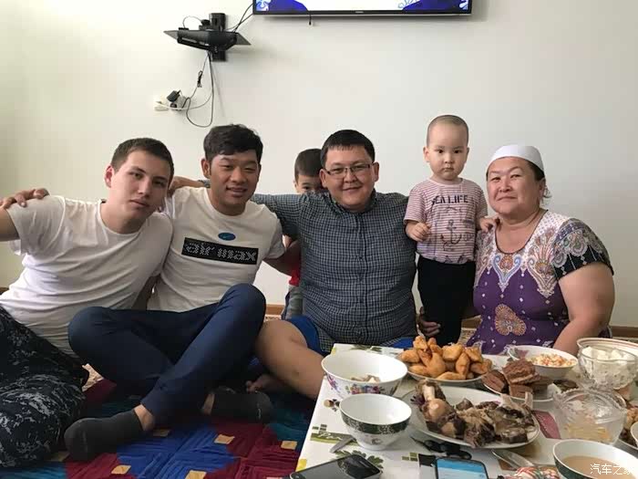 Mura今天上班,海关没船到港没什么事,他上级Azamate提议一起去他家做客吃饭,人家这么热情好客,我们也就不客气了。开车带我们来到他们家,当天是周末,一家人都在,他夫人给我们准备了正宗哈餐。我们用手机翻译聊了很多,和他们交朋友给你的感觉就是热情单纯。