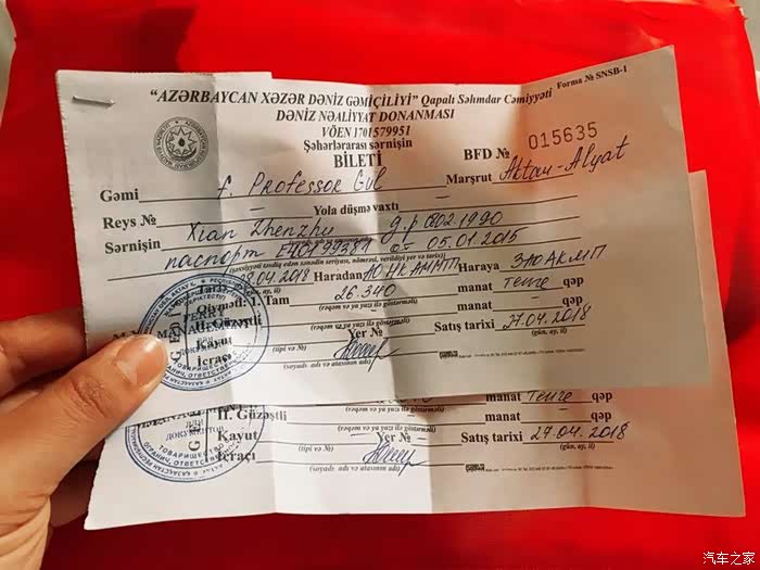 办理手续时,剧情又有了插曲,车辆还差最后一个章子,工作人员的章子竟然丢了,好神奇,貌似注定不让我们离开阿克套了,哈哈。给Mura打电话,通过他们的交流,Mura让我们再等会,人不全船不开。最后等待1个小时后,章子找到了,通过安检,顺利登船!