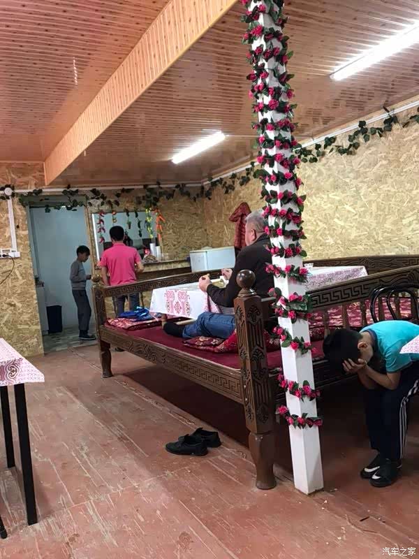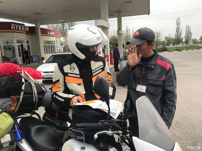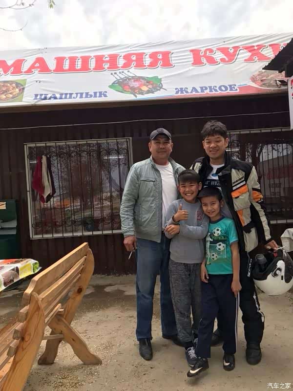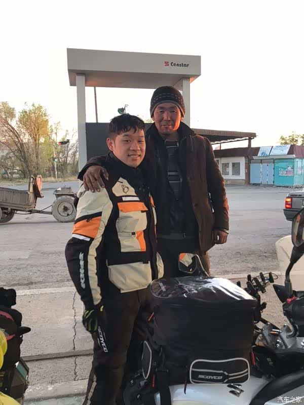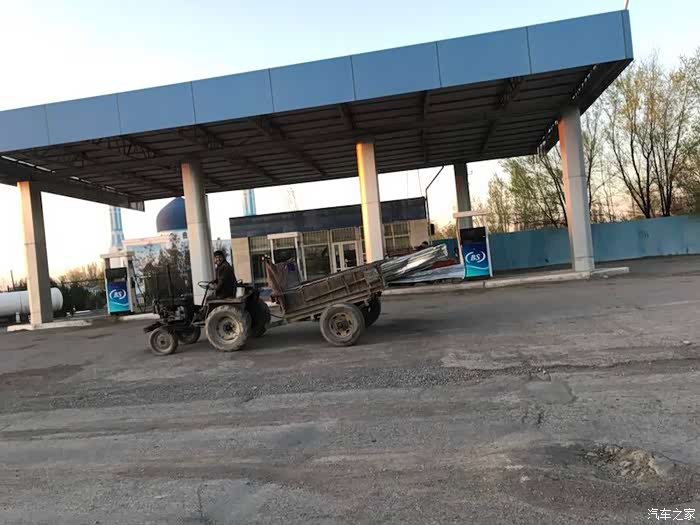 这时,门口停了辆拖拉机,这位大汉立马喊住了他(熟人),走了过来,先握了手(哈萨克人),说了句你好!(我们当时觉得很神奇)我们简单说了几句告诉了他原因,似乎能听懂但汉语说的又不好。原来这位当地人,从他的太爷爷那会苏州来到这里扎根,他能知道汇率给过他50RMB他又转交给老板折合35当地币显的很开心,我们也很感谢。加好油后我们继续出发。