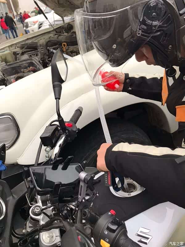 一顿还聊之后去加油:没想到服务区的加油站不给摩托车加(其实整个新疆基本不给摩托车加油)要加油也可以必须去派出所备案开条~这可难坏我们俩了。