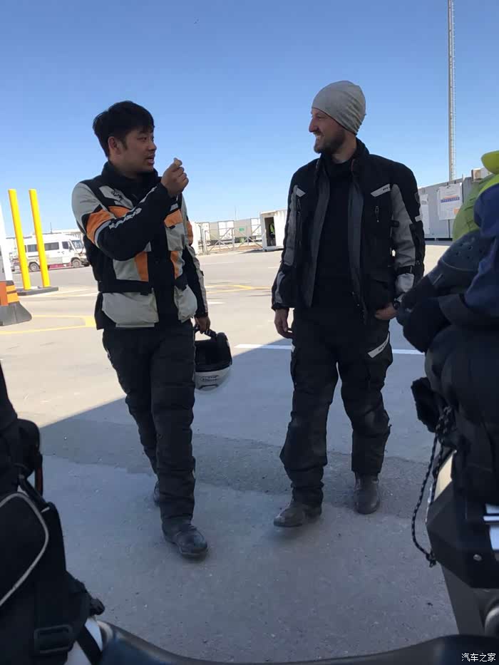 别过艾米乐,我们向不远处的边界出发,来到海关时间还早下午2点。海关车辆很多,我们也排起了队。停下车卸下头盔,所有排队的人们给我们手势,让我们直接越过100多米的队伍来到了海关大门。