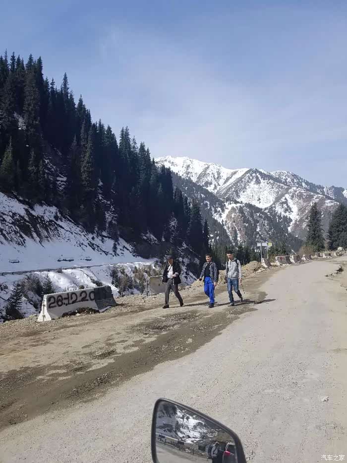 休息好继续出发,这会跑出来个维族大汉好心地告诉我们,今天早上果子沟区域下了大雪车可能过不去。我看了看天空,晴空万里预计应该化了,不时有车过来过去,问题不大。谢过维族大汉,走!