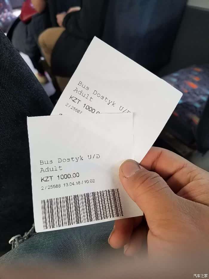 坐车去潘菲洛夫公园(哈国的公交车时刷卡的,没有投币箱 我们给司机了500面额给我们找了零钱,折合RMB2元)