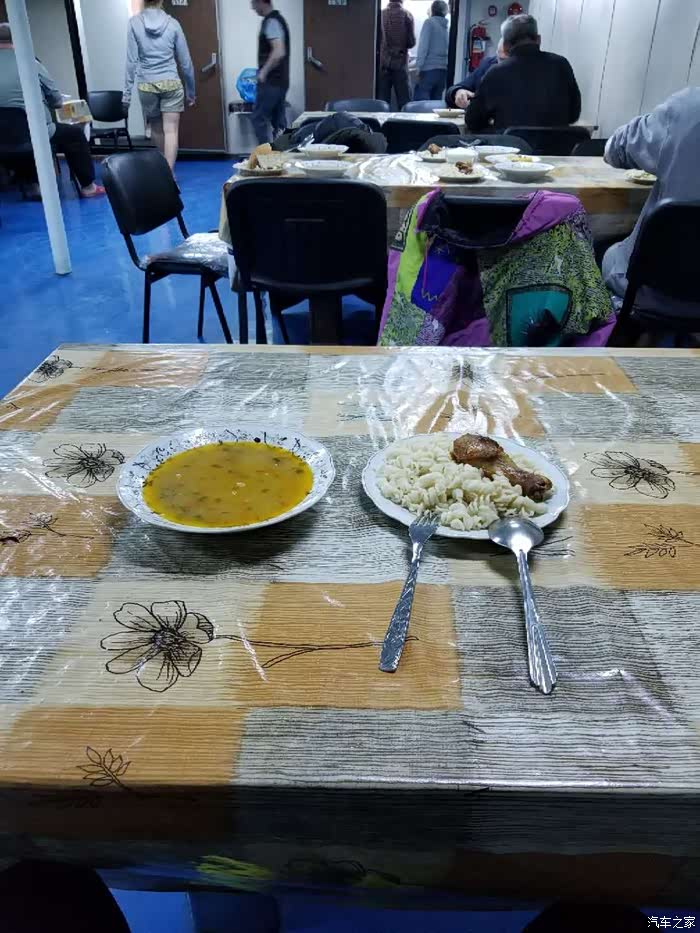 船上的工作人员很热情,为我俩安排了两人间(因为空房多)已经是晚上8点多了还没开船,餐厅的喇叭响了,过道响起了零星的脚步声,开饭了,隔壁新认识的朋友费迪南德(德国来中亚自驾)来叫我们。