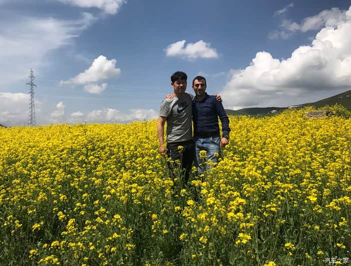 到达目的地凯达贝克地区,我们停在了一家开满油菜花的KAFE店(油菜花同样在阿国也只是观赏用,在这里槐花油菜花都不是食用)的进去之后才知道是他自己的店,平时是母亲还有家人在招呼,妈妈亲自为我们做了馅饼,非常像国内的韭菜盒子,不过陷儿确实不好接受,起司馅儿,经不住热情招待吃了些东西喝了两瓶,时间还早艾米乐提出带我们去山里转转。我们没有骑车坐着艾米乐的车一起进了山,山区的景色很美有些像甘南和青藏的感觉,不过山下的村庄还是给人一种欧洲村落的感觉。