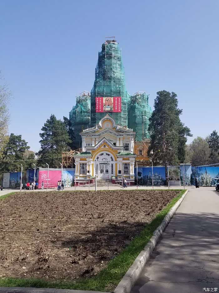 逛完博物馆,坐上公交车前往潘菲洛夫公园(提醒大家出境旅行乘坐公家车谷歌地图公交模式还是很靠谱的)公园最有名的耶稣升天大教堂,可惜去的时候正在维护,没能看到全景(这次旅行许多景点都有维护,奇怪)进入教堂许多虔诚的教徒在祷告,教堂很华丽,女士进入必须戴头巾。