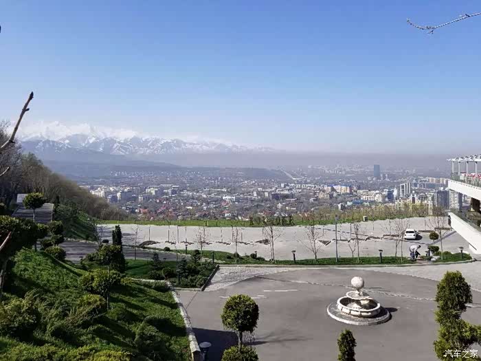 阿拉木图的整体建筑,前苏联风格和现代化建筑一半一半。坐缆车上了绿色山丘公园这里可以看到整个城市全景,但是缆车检修改为大巴(往返每人1000T)到达山顶整个城市映入眼帘,薄薄的一层霾笼罩在城市上空,证明了这座城市的人口和汽车还是挺多的。