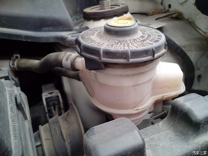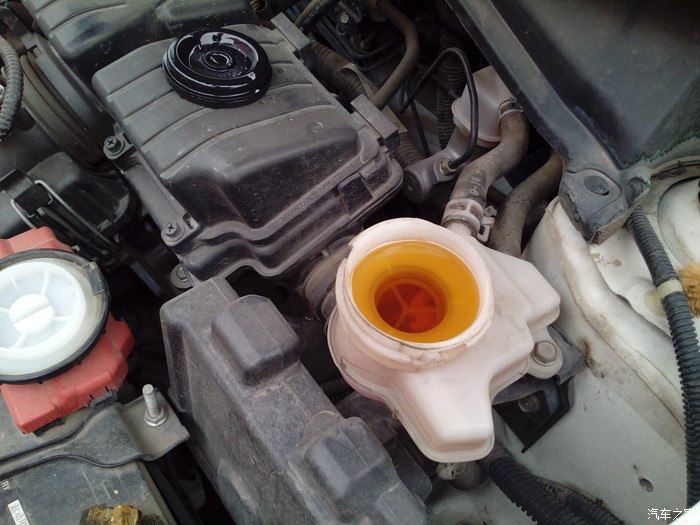 换之前先看一看刹车油液面,我去年12月换过刹车油。里面液量其实比正常偏高。换刹车之前必须拧开盖子,顶活塞的时候要注意液面回升。