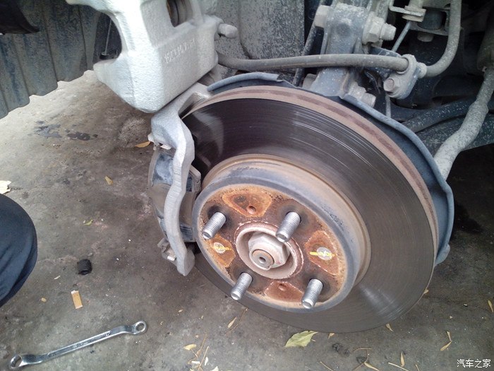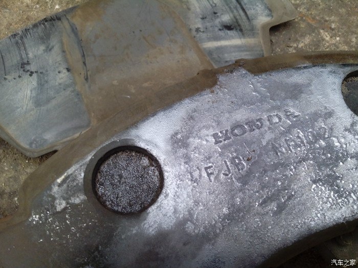 这是拆下来的旧片。左前轮。 虽然我车跑了7万6了,但前片厚度其实还很厚的。我这换片就是为了发个作业……