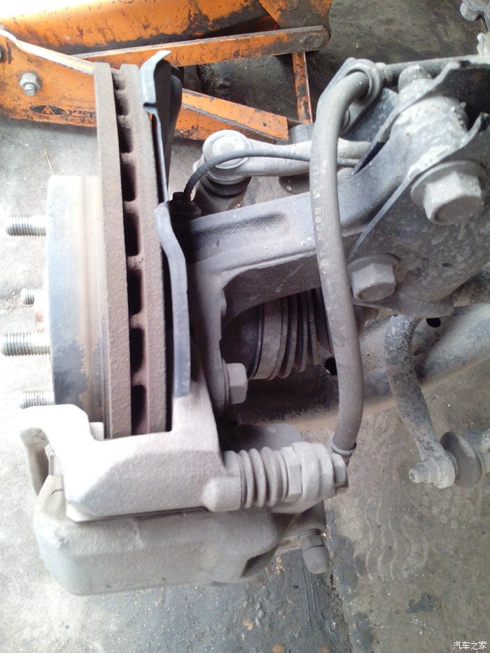 换刹车片的地方还是老地方,可以参考这个帖子:《路边摊修车:换前刹车片作业(别克GL8 陆尊 3.0)》