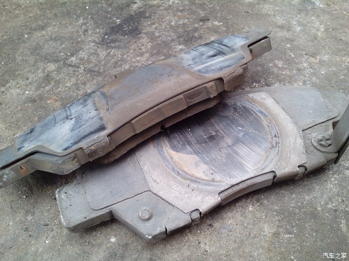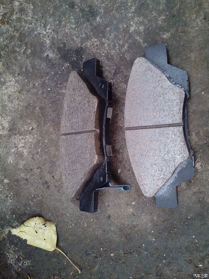 新旧刹车片对比。大家能看出厚度吧?我的旧刹车片其还很厚。