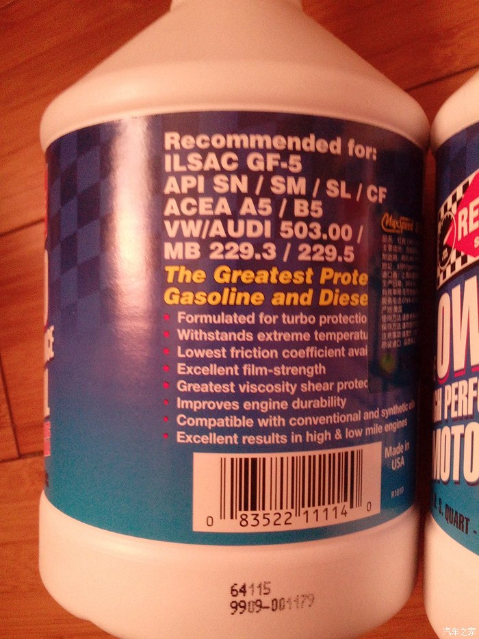 看看认证内容,级别SN /CF,ACEA是 A5/B5 。柴油机都能用这个油。粘度指数还真是广泛啊……