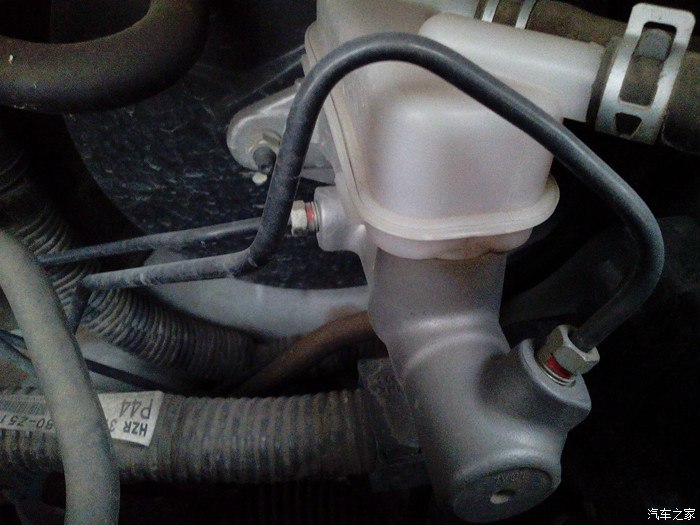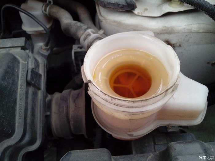 看,刹车油快溢出来了…… 因为活塞被顶回去了。