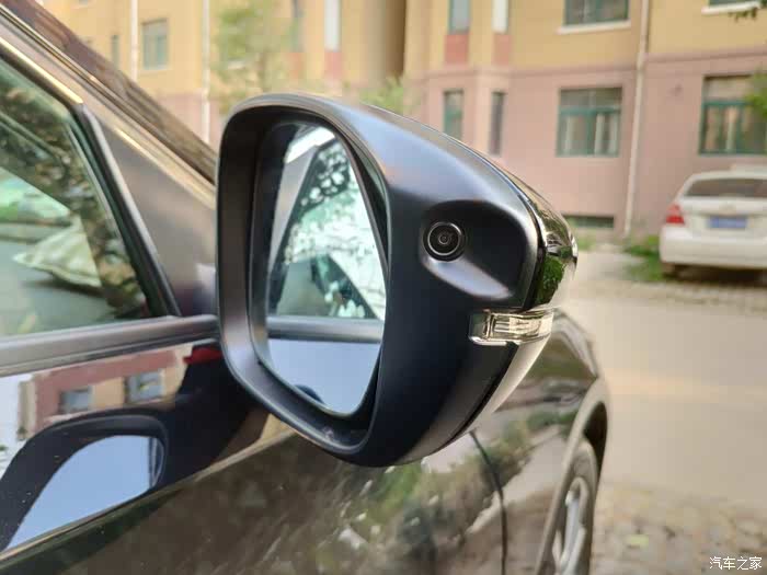 6.右后视镜被侧后方摄像头占用一部分面积,造成视野偏小,好在打右转向时(或主动开启)中控屏幕会显示右后方画面,对右后视镜面积偏小的问题进行了弥补。