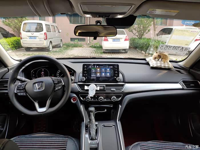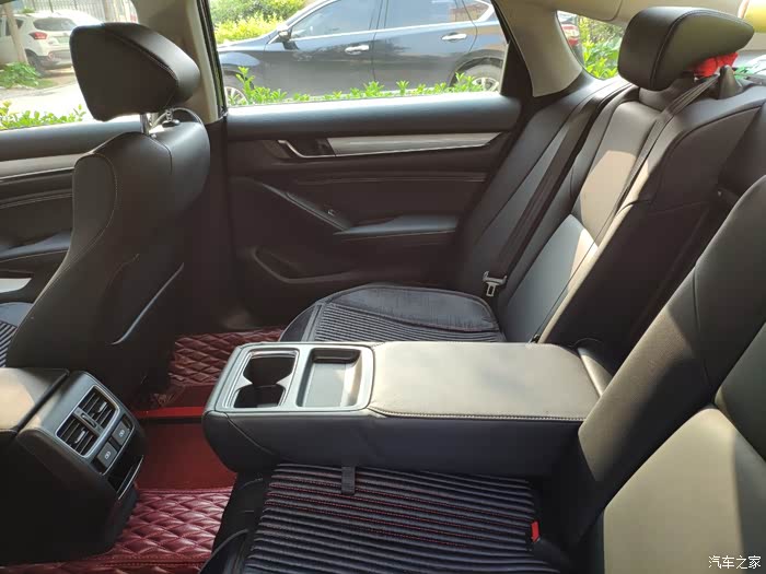 INSPIRE精悦版及以下车型采用的是黑色皮质座椅,高配及混动车型采用的是棕色皮质座椅,我个人比较喜欢黑色座椅,相比较棕色座椅显得比较年轻一些。(请大家忽略我个人放的坐垫及提车时送的劣质手机支架)精悦版采用真皮包裹方向盘,半液晶仪表搭配中控银色装饰条与中控8英寸触摸屏幕(精悦版带有CarPlay功能)整体质感可以达到同级车及格标准以上,内饰并无太大异味。需夸奖的是:空调旋钮手感优秀并带有颜色指示,增加温度旋钮周围变红,减少温度旋钮周围变蓝;需批评的是:中控中央两处出风口无法手动进行风量关闭。