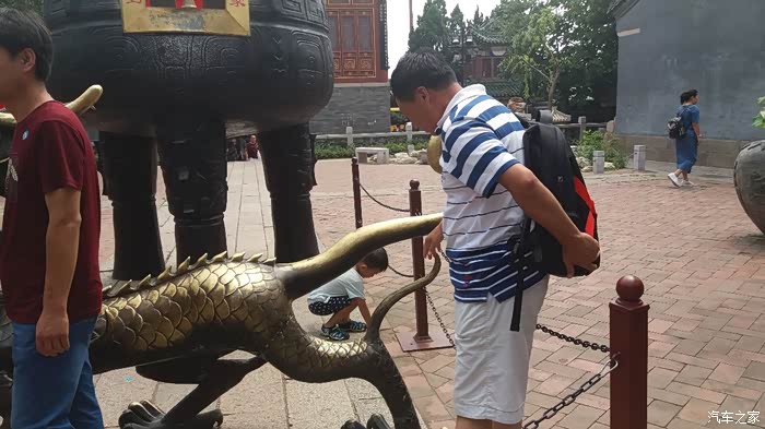 姨夫和当当小朋友也在摸着青龙的福气