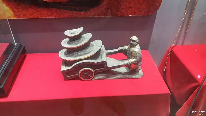 珍珠展览馆内的,小摆件,推着一车元宝的老师傅
