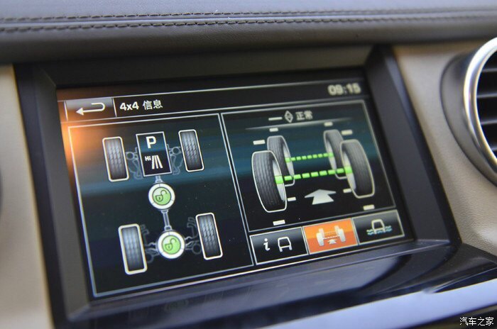 这是当前减配的样式当然这并不是十分保险保证你有中差!也可能路虎犯贱依然不给你加装!只取字面意思给你个分动箱罢了。所以我建议大家多花10000也就是那个价值18000的越野包。这个越野包会激发出发现4所有应有的性能!其中包括双锁、双分动、大岩石以及涉水感应!如果全部选装,导航显示屏幕4x4里面会显示以下样式!