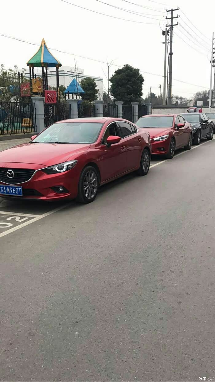 不停在一起对比不明显,停在一起对比,就能发现原厂2.0的17寸外观实在弱爆了。。。不符合阿特兹霸气外露的车身,大家勿喷