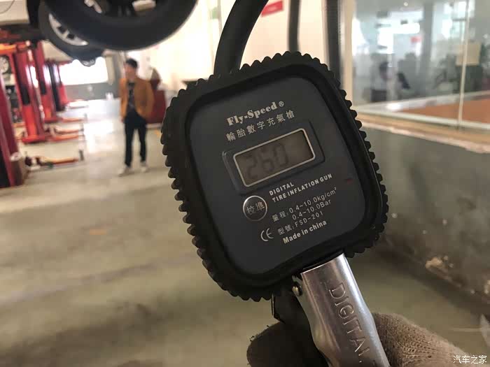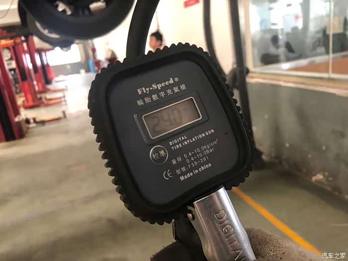 作业完了不忘检查一下胎压,冬天的时候调整到了2.4,年后气温升高了十多度,热胀冷缩,胎压又到2.6了,再次调成2.4。