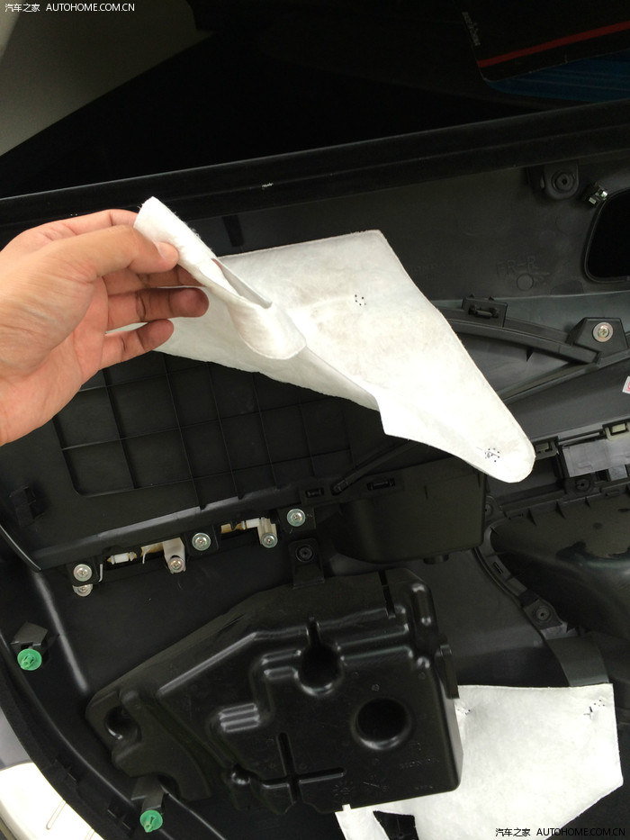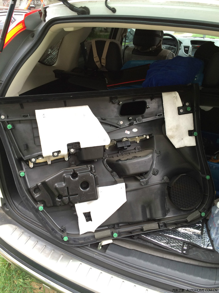 23、门板取下来了 放在后备箱里 白色的是隔音棉
