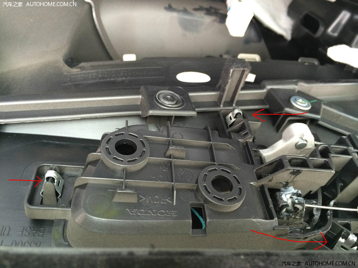 39、从下面看 好多卡子 其实只有箭头所指的两个卡子是受力的 是手指用力一顶就搞定了