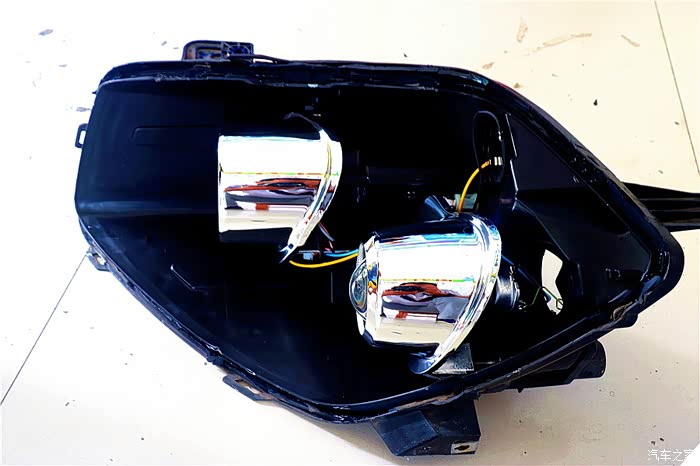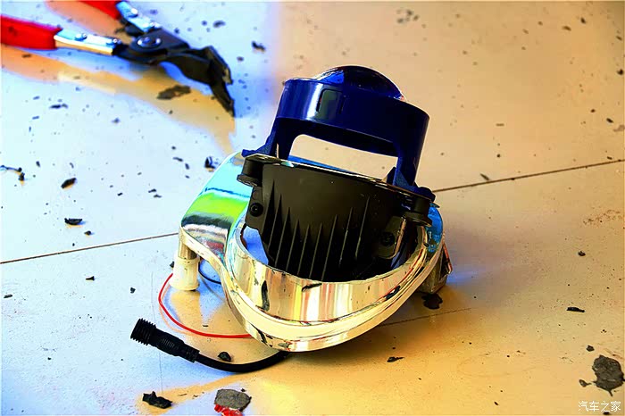 由于这套LDE透镜大了点,所以要把原车安装透镜的支架改装下,要不安装不进去。