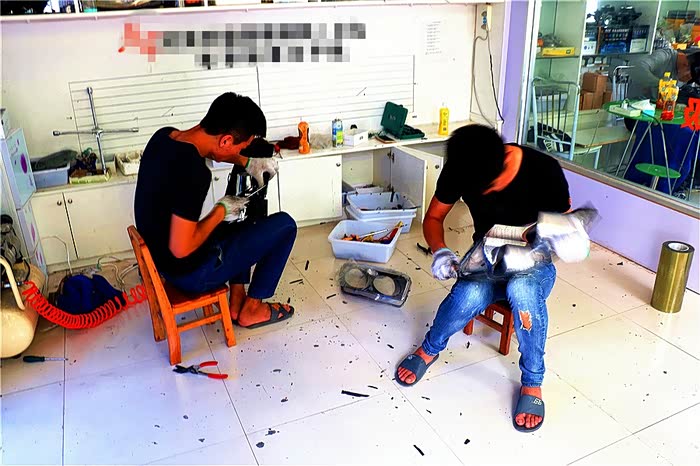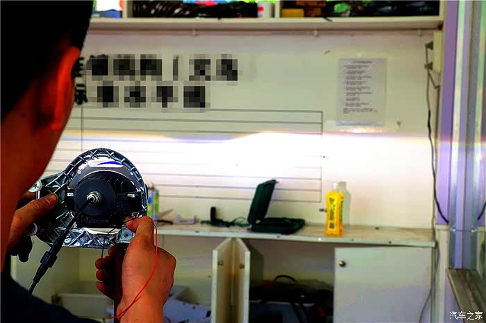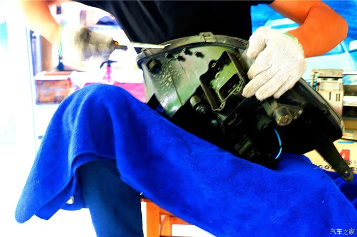 技工拆开大灯,