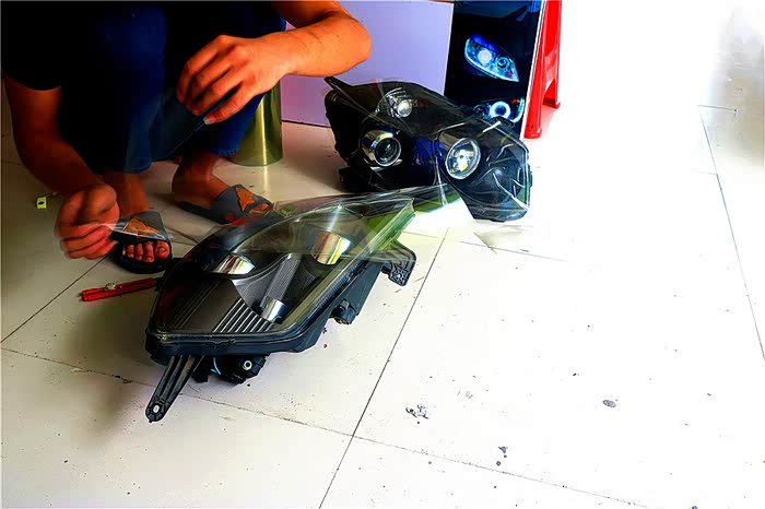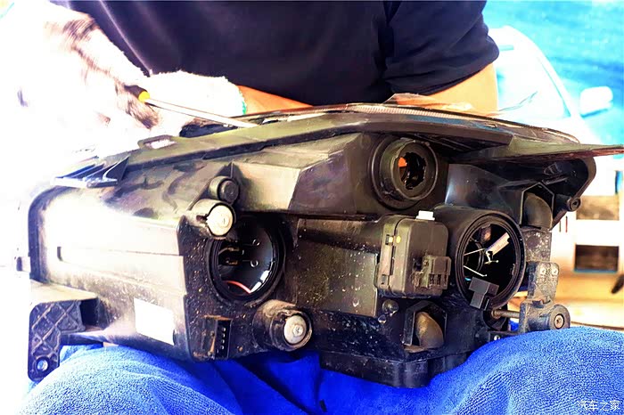 给大灯包上防护膜,以免划伤灯壳,在拆了上面的附件,