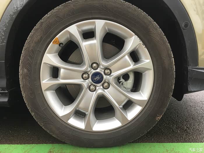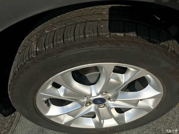固特异轮胎容易卡石子(如下图),对它颇有不满,听说翼虎的车子会有吃胎的毛病,5000多公里未见异常。