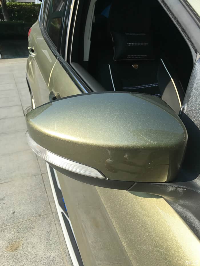 虽然细节方面不太注重美观,(如图1)特别是隐蔽地方,和各大缝隙。但用料讲究的质量过关,漆面厚实。“滚滚”后视镜受伤过(如下图2、3),后视镜镜盖撞击飞落地面,镜面也扭曲变形,随线路挂落,自己动手装回,电动系统无损。当时以为完了要换后视镜,还好“滚滚”很是坚挺。