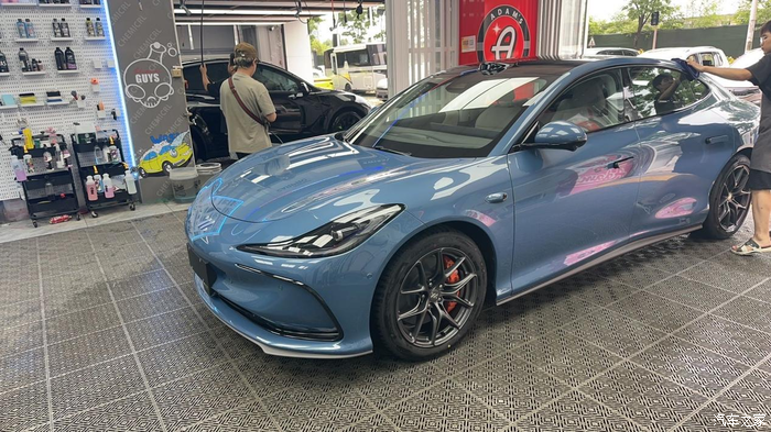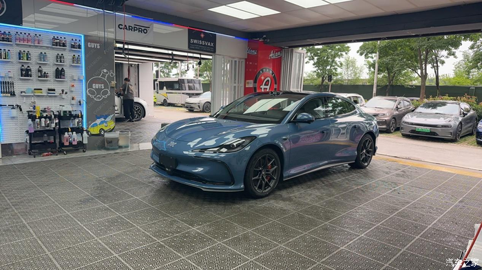 今天去贴车衣,本就帅气的圣马丁蓝多了一层车衣的后,明显质感更上了一层楼。其实买L6就是看中它的颜值和驾控,颜值就不多说了,不和su7那样的缝合怪比,和极氪007比,说实话极氪007前脸太扁了,没啥层次感,L6前脸明显立体很多,更像一款轿跑车,所以,L6的颜值我是打高分的。