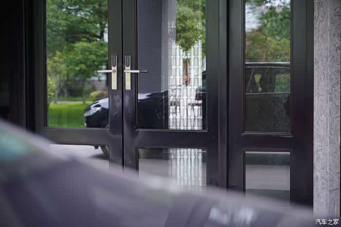 印在门玻璃上的S90也是如此帅气。