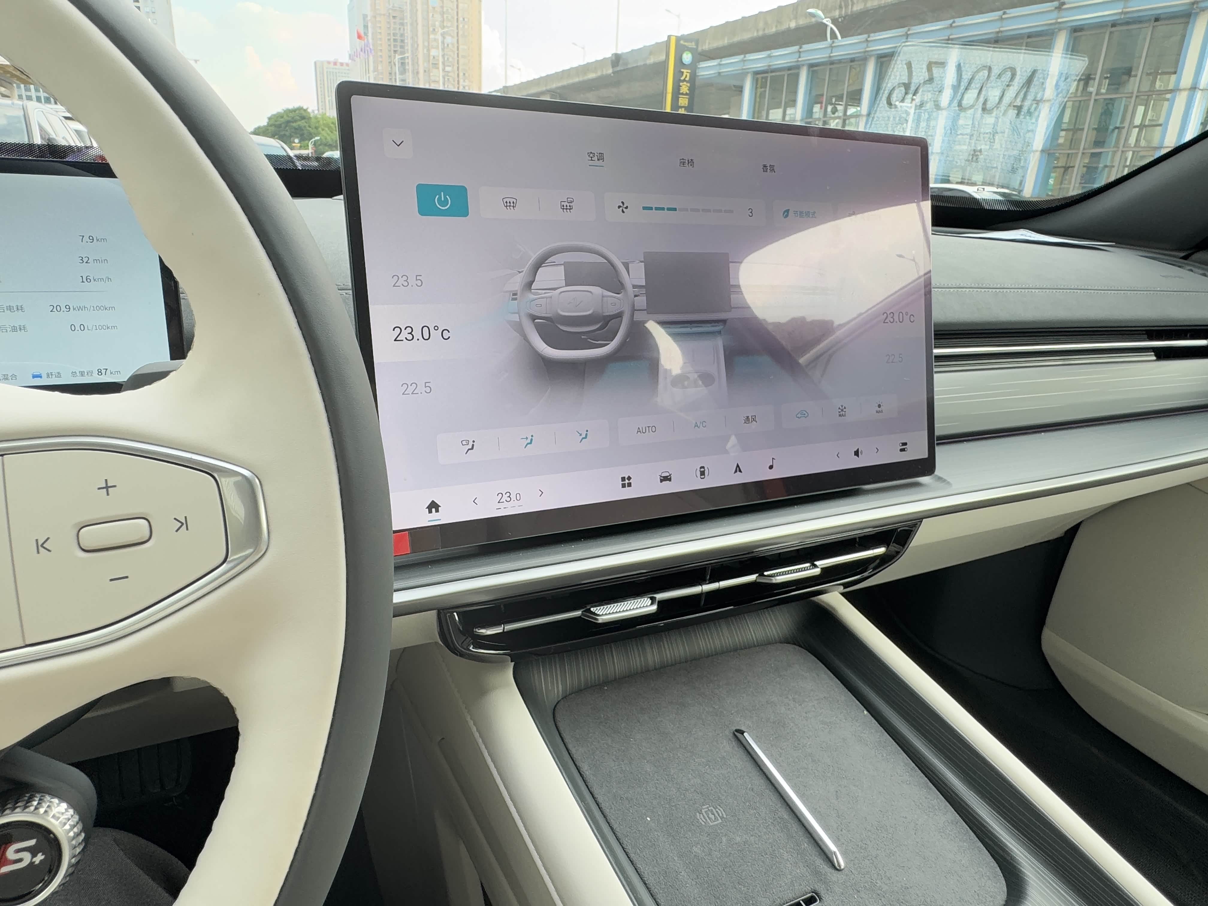 最惊喜的是座椅通风,之前开朋友的车,通风档要么太弱没用,要么太强冻得慌,007的3档调节刚好——1档微风,适合春秋;2档中等风力,夏天开车后背刚好不闷汗;3档强风,刚上车座椅烫的时候开几分钟,很快就凉下来。
