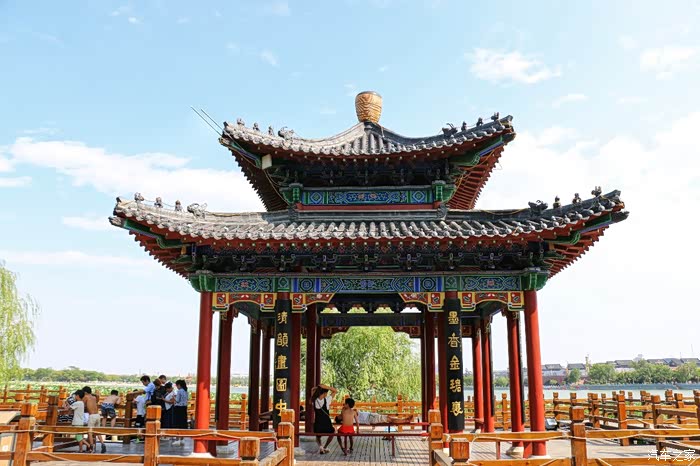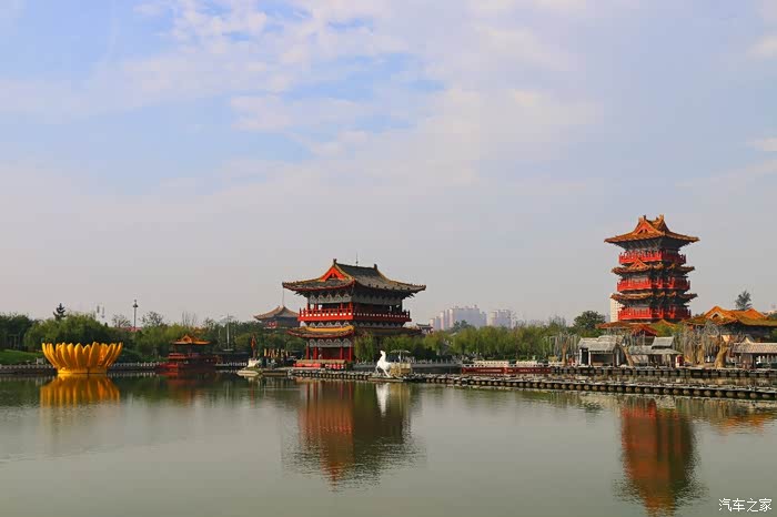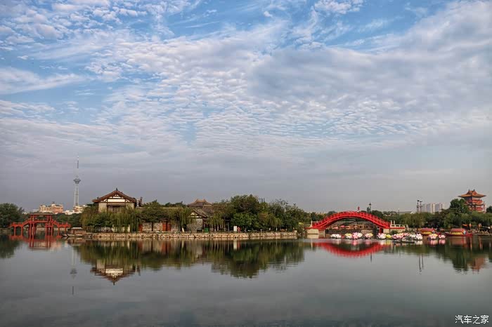 我们看鸳鸯戏水,赏一湖美景,体验着别样的开封清明上河园。
