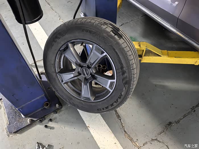 然后上扒胎机把原车胎卸下来换上新轮胎,换完新轮胎以后做动平衡。