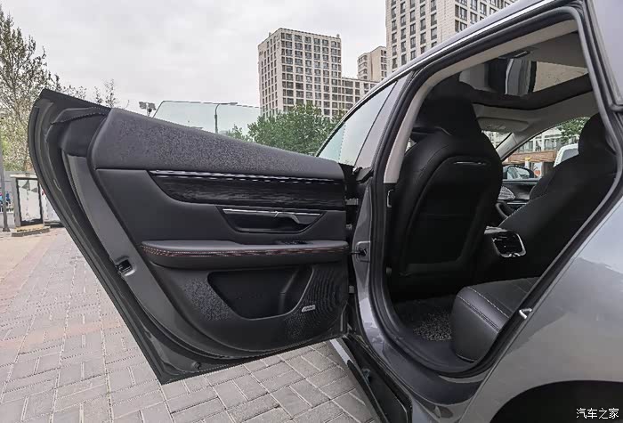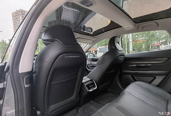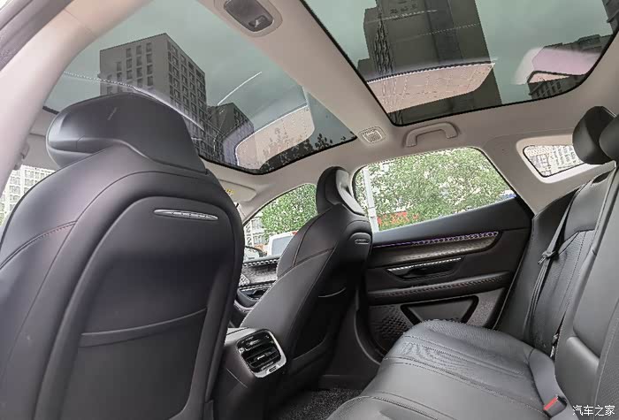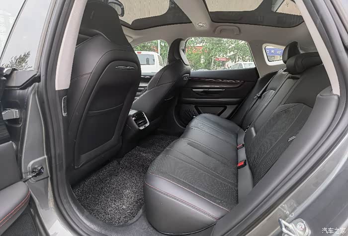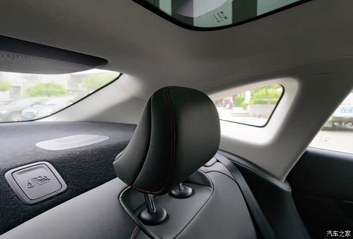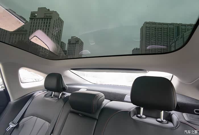 轿跑溜背设计,对比于轿车略矮,配上全玻璃车顶,反而显得更通透,让空间感显得更大,所以坐在驾驶舱并没有觉得身体很憋屈,反而觉得设计得刚刚好,完全就是一台赛车的感觉,更有意思的是副驾驶位竟然有一个小桌板,看起来很萌,前排空间相对而言很友好,后排的空间,高个子可能有点局促,刚好玻璃到这里是往下的弧线,我们家一般都是我开车,所以小孩坐后排倒是没有什么影响。