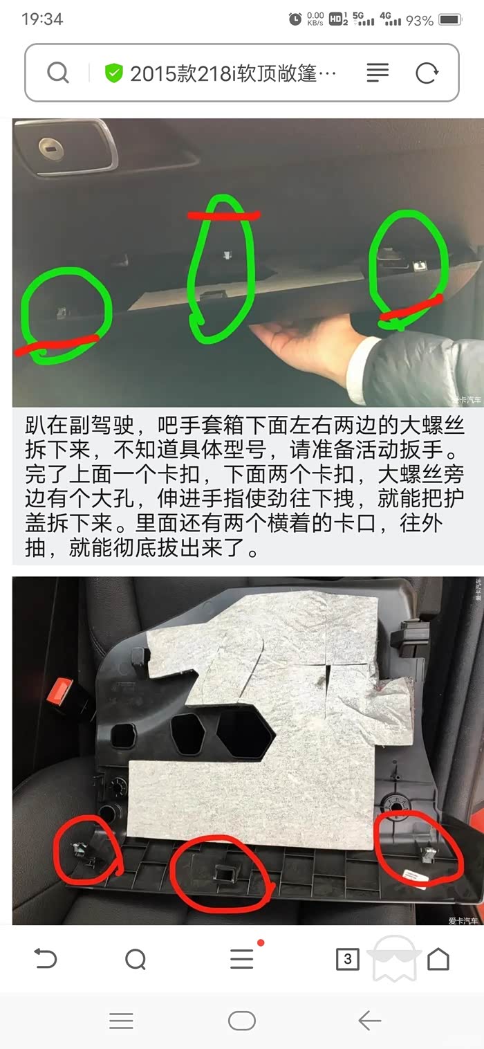 按照攻略,把自己的2灰副驾手套箱下面的挡板给卸了下来。