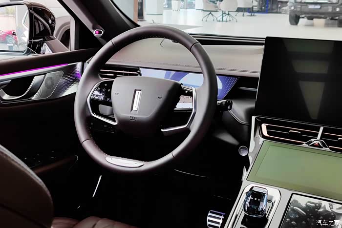 进到车内,瞬间就是满满的科技感和豪华感,超大的多媒体大屏非常显眼,水晶式的电子挡把也很漂亮,整个中控非常有科技感,同时做工和用料非常赞,几乎都是软性的材质,手感非常好。