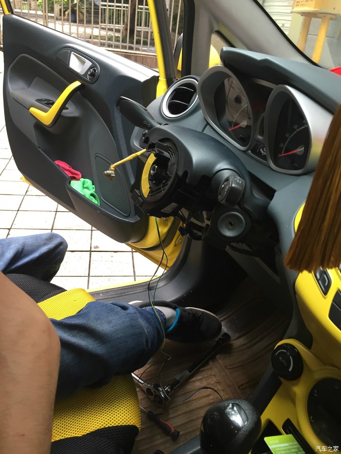 1、 安装:主要是拆装气囊和方向盘,连接配套的线束。要改温度传感器的也要接线(这个我没有搞),拆气囊方向盘、拆仪表需要小心谨慎,搞花了就不好看了。拆音响主机之类的论坛已有详细作业,不详细描述了。还要注意一点:所有的设备和模块安装前必须先刷隐藏程序,切记哦。