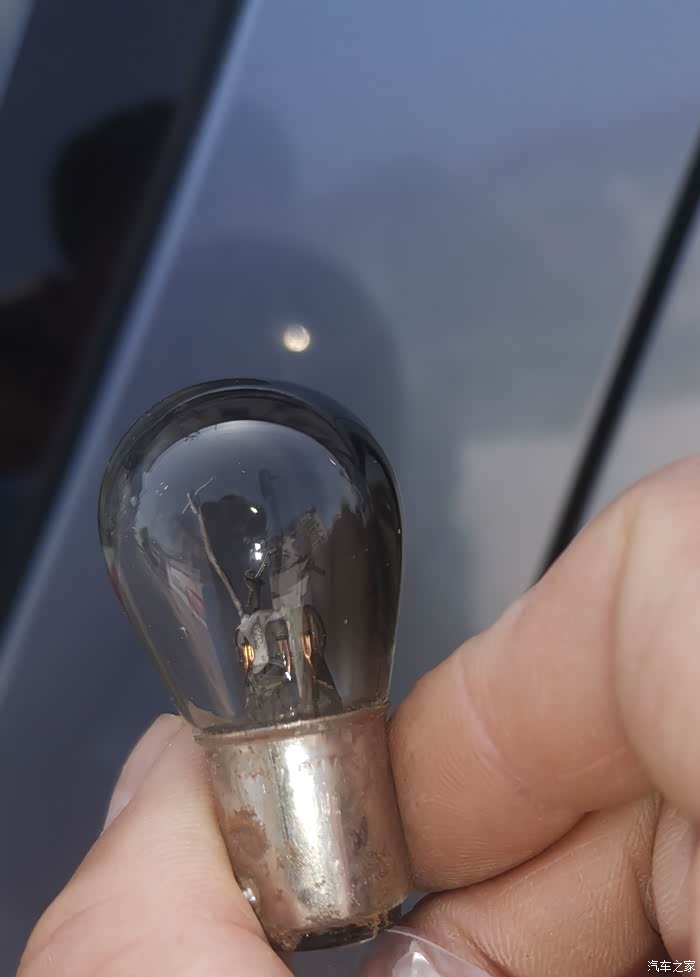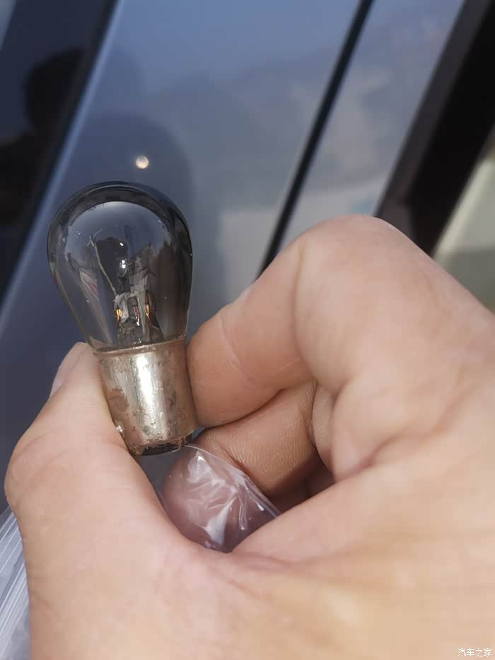 灯泡黑了,灯丝断了,灯脚也只剩一个,刹车灯是高低脚,我差点买成平脚