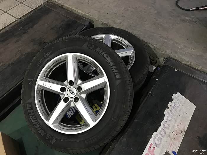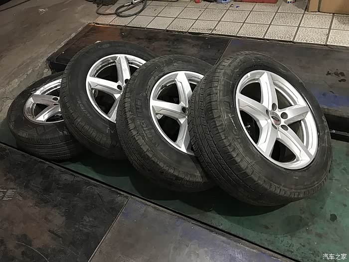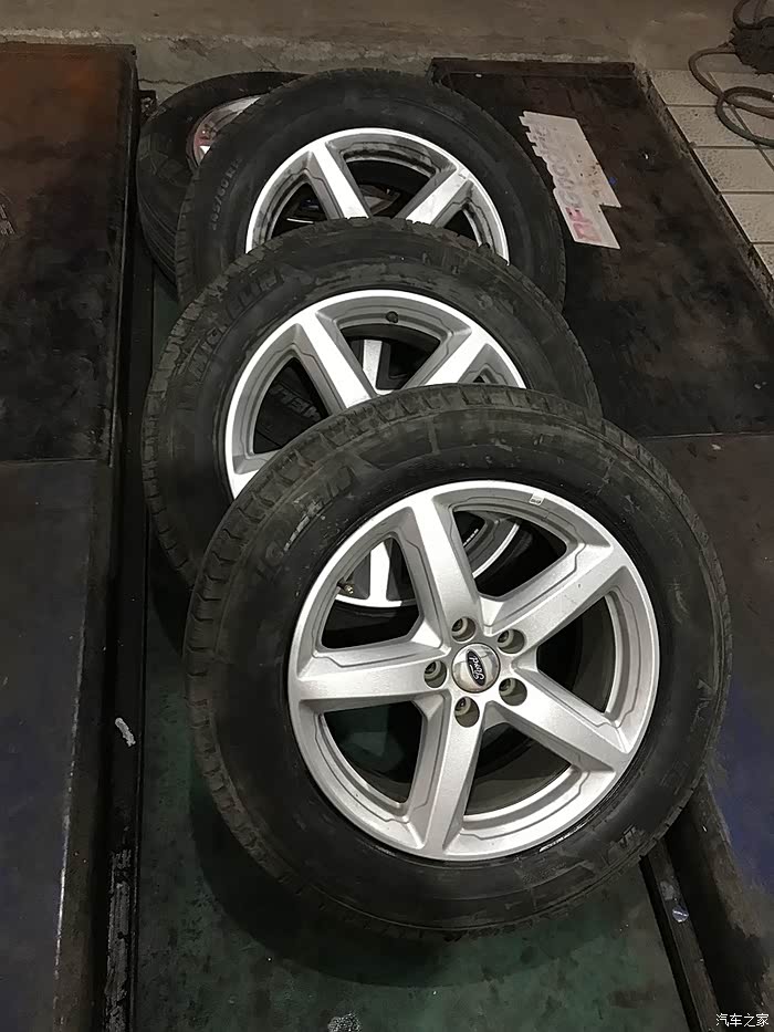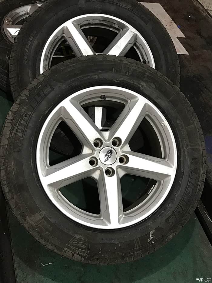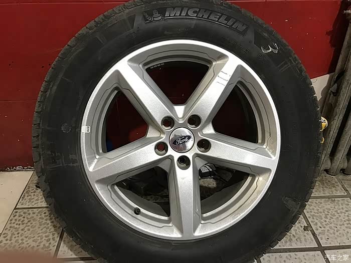 说真的,当初换车时由于店里没有低配现车,故此也没太注意轮毂大小的问题,总以为老款探险者见多了,觉得轮毂都是一样的,到了提车的时候才发现低配大探轮毂是18吋的,而且轮辐也不是很喜欢,后来就一直想要换个轮毂,可惜新车轮胎还很新,如果换个轮毂就等于原车的轮胎用不了,有点浪费,就这样一直坚持着,后来听轮胎店的一个老板说米其林的轮胎有保险,一年之内出现问题可以索赔80%,觉得挺合适的,于是在今年的9月份刚刚更换了4条米其林轮胎,无独有偶,刚换上轮胎一个月的时候去4S店保养车时与售后接待聊起这事,结果他说他们店里的库房有几十个老款探险者的轮毂,以前主要是老款探险者出现事故后保险公司索赔的时候更换用的,现在要处理1200一个,问我要不要,我当时决定买4个,而且以前发过帖子,也帮论坛的车友从他那家4S店里买过20多个原厂老款轮毂,但是买回来之后一直没换在车上,最近不忙,找了家轮胎店把新轮毂轮胎装上车分享一下。